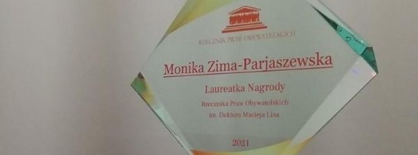 Z Rzecznikiem Praw Obywatelskich zapraszamy do obejrzenia transmisji uroczystości wręczenia Nagrody im. dr. Macieja Lisa dr Monice Zimie-Parjaszewskiej.