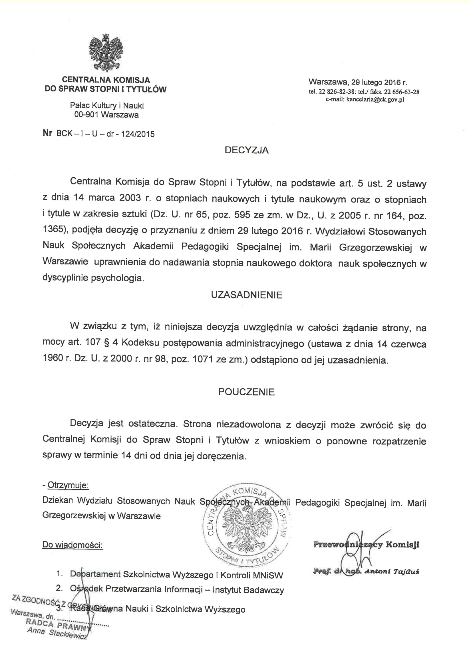- uprawnienia doktoraty psychologia (Nauki Społeczne) link do pliku