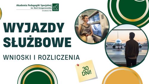 | Zarządzenie nr 75/2024 Rektora Akademii Pedagogiki Specjalnej im. Marii Grzegorzewskiej z dnia 16 grudnia 2024 r. w sprawie szczegółowych zasad odbywania, finansowania i rozliczania podróży służbowych krajowych i zagranicznych | link do pliku |