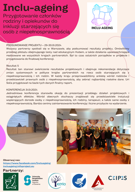 Celem projektu jest promowanie rzeczywistej integracji społecznej starzejących się osób z niepełnosprawnością. Mogą bowiem one doświadczać nowych potrzeb i nowej dynamiki funkcjonowania, które wpływają nie tylko na ich życie, ale także na otoczenie społeczne, rodzinę i opiekunów prawnych. Jest to związane nie tylko z ich wzajemnymi relacjami, ale także z nowymi zmianami i wyzwaniami, z którymi przyjdzie się zmierzyć obu stronom. W rzeczywistości starzenie się jest złożonym etapem życia, który może być dezorientujący nie tylko dla osób starszych, ale także dla tych, którzy się nimi opiekują.